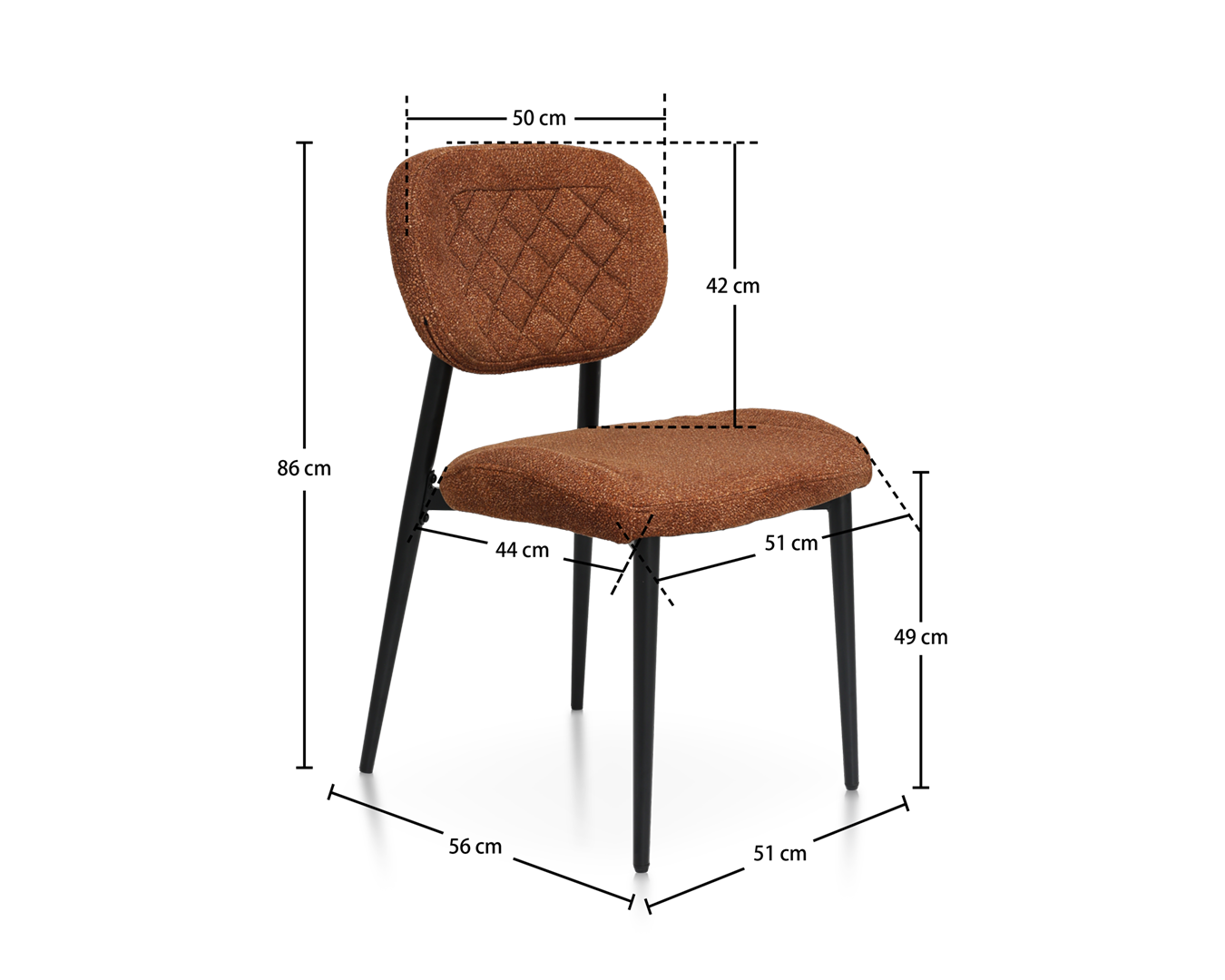 • そのブラックメタルフレームは、堅牢な安定性を提供するだけでなく、豊かな茶色の室内装飾品を美しく補完します。椅子のデザインには、曲がった背もたれとパッド入りのシートが含まれており、すべてのユーザーに最大限の快適さを確保します。夕食会を開催したり、静かな食事を楽しんだりしても、この椅子はあなたの食事体験を向上させます。