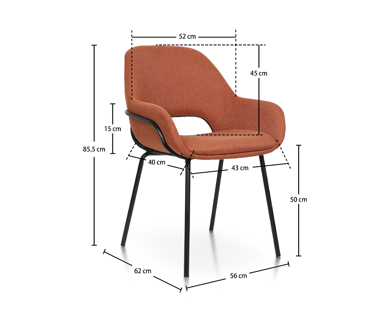 • 印象的な金属ベースと柔らかい生地の美しいブレンドを備えたこの椅子は、スタイリッシュな才能を提供しながら、長くリラックスした夕食に最適な快適さを提供します。人間工学に基づいたデザインと50cmのシートの高さは理想的な食事体験になり、頑丈なフレームは永続的な耐久性を保証します。