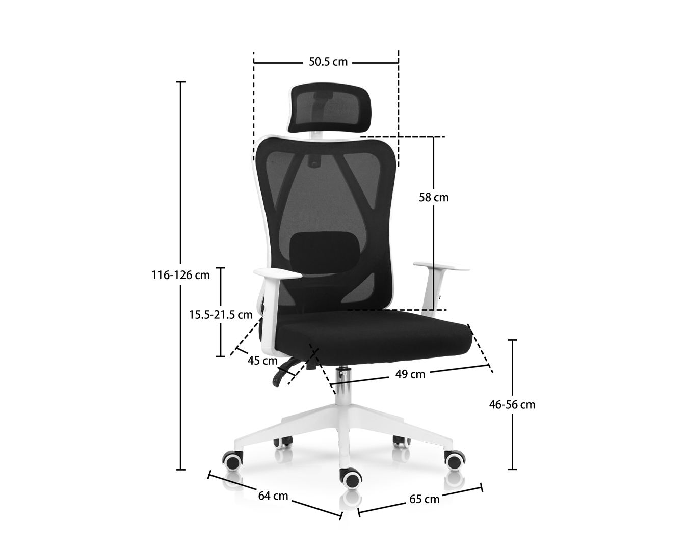 • 調整可能な高さのメカニズムにより、椅子をカスタマイズして特定のニーズに合わせて、地面に足が平らで膝が90度の角度になるようにします。アームレストを調整して、腕を完璧にサポートし、肩と首の負担を減らすことができます。背もたれに組み込まれた腰椎サポートは、適切な姿勢を促進し、全体的な快適性と生産性を高めます。