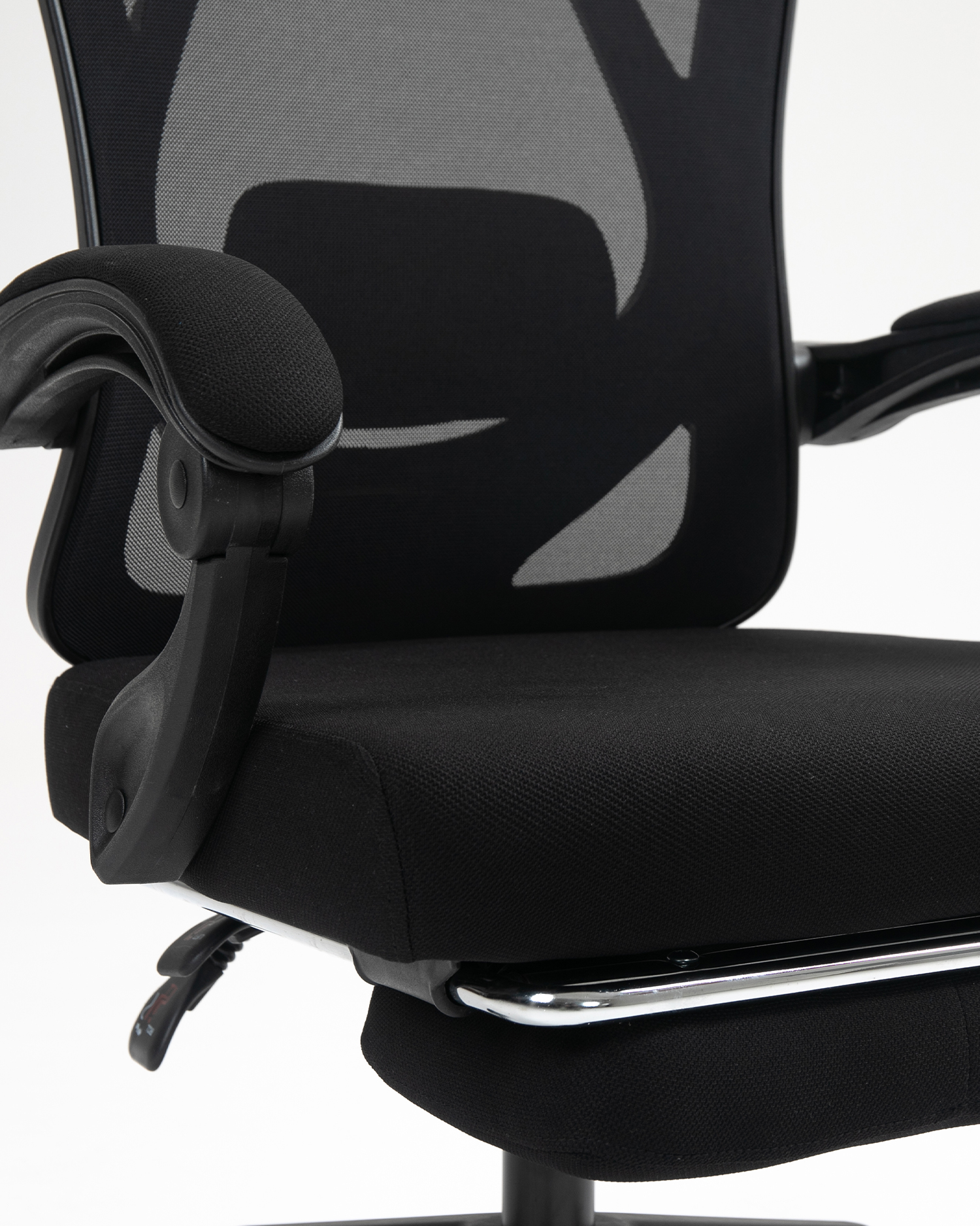 フットレストを備えたオフィスチェアをリクライニングします