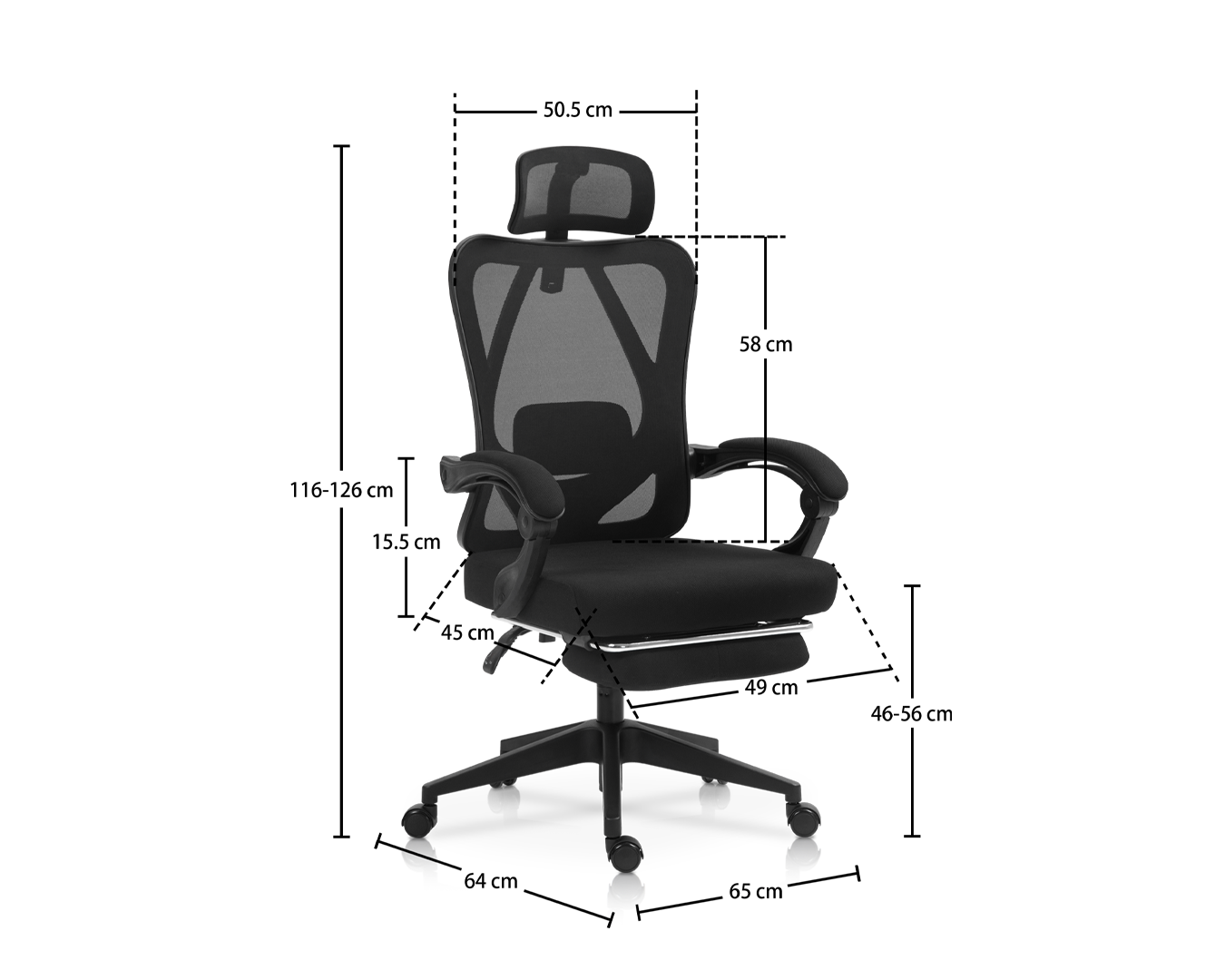 - サイズ:W65*d64*H116-126 cm / sh:46-56 cm