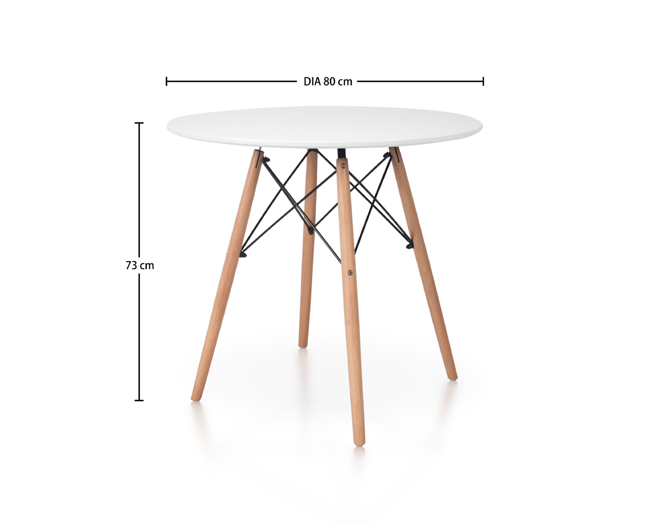 • プレミアム密度ボードで作られたテーブルの丸いトップは、洗練されたシンプルさを醸し出す手つかずの白い表面を誇っています。天然の木製の脚は、白い卓上と温かいコントラストを提供し、バランスのとれた調和のとれた外観を作り出します。脚をつなぐ黒いワイヤーフレームは、強度と現代の美学の両方を追加し、このテーブルはどの部屋でも傑出したピースになります。