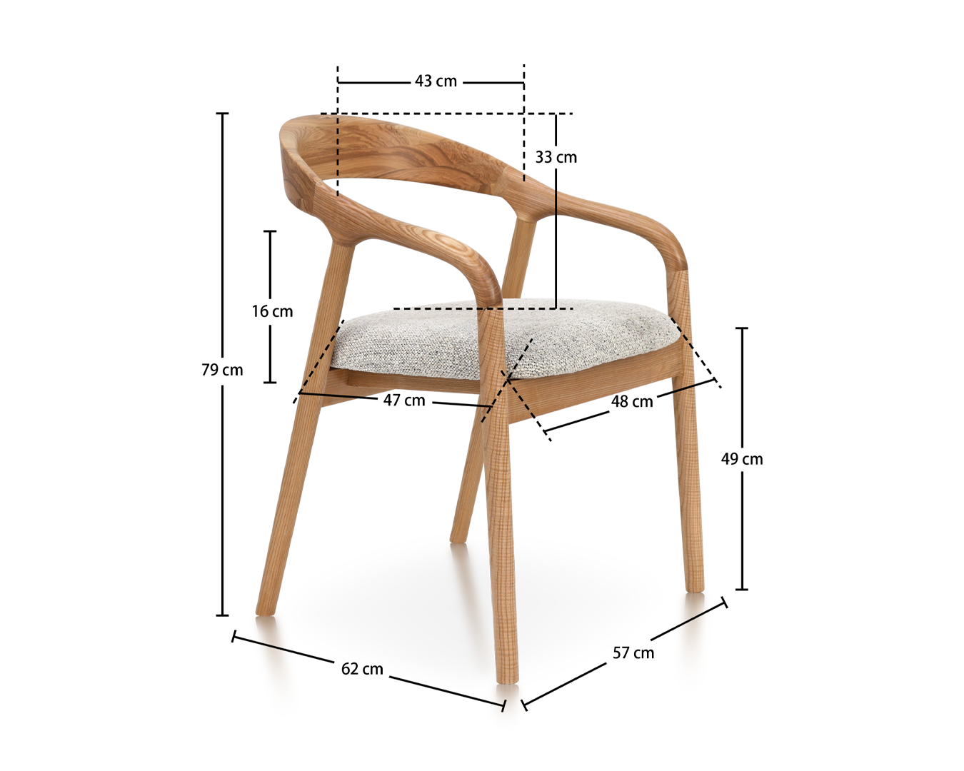 カーブバックアッシュ木製の椅子