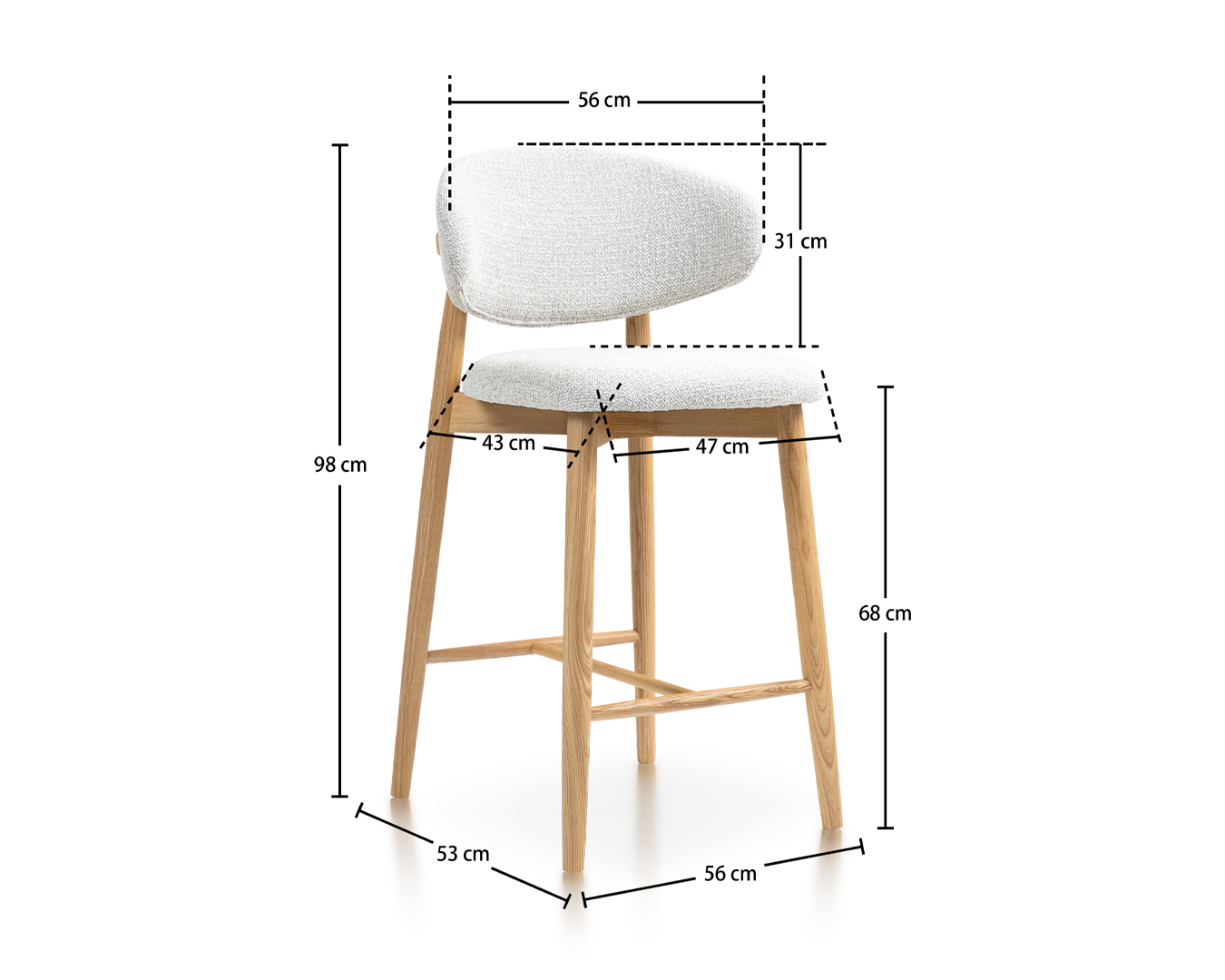 • 耐久性のあるアッシュウッドから作られ、バーカウンターやキッチンアイランドと完全に組み合わせるように設計されています。頑丈なフレームと人間工学に基づいたシートは、長期にわたるサポートを保証し、洗練されたデザインは現代的または素朴なインテリアに最適です。